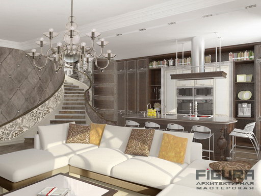 Гостиная - Галерея проекта, 3D изображение 2 - Жилой комплекс "Режиссер" - Дизайн проект квартиры, проект 2010 года. Заказчик: Автор проекта: Архитектурная мастерская "Фигура" Адрес: ул. Пырьева, 2 Общая площадь: 280кв.м :: Портфолио - Дизайн проект квартиры