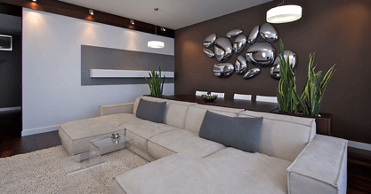 Данный стиль не всегда обозначает соответствие всем современным тенденциям моды. Дизайн квартиры в стиле модерн подразумевает баланс между строгими очертаниями и плавными формами, между натуральными и искусственными природными материалами. Он зародился в Европе в то время, когда был совершен ощутимый скачок в развитии современных технологий, а среди стилей интерьера царил полный хаос. Тогда отмечался огромный диапазон стилистических решений. Это мы учитываем при разработке дизайн проектов в стиле модерн, поэтому в одном помещении могут совмещаться элементы нескольких дизайнерских направлений.